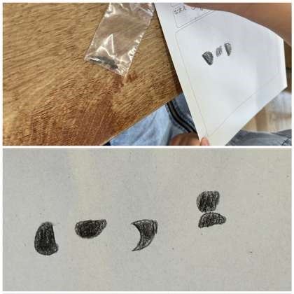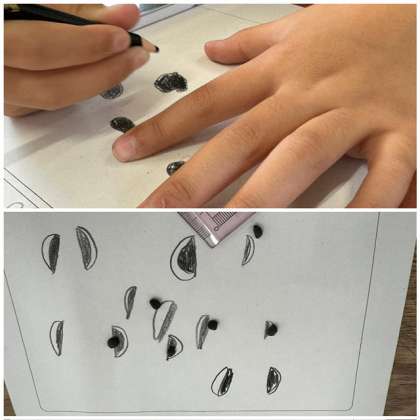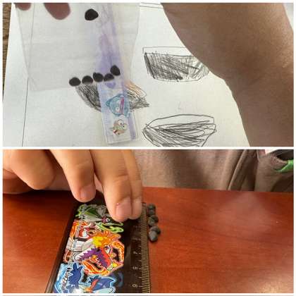匂いを嗅いでみたり、触って硬さを確かめたり、ものさしで大きさを測ったりする子もいました。