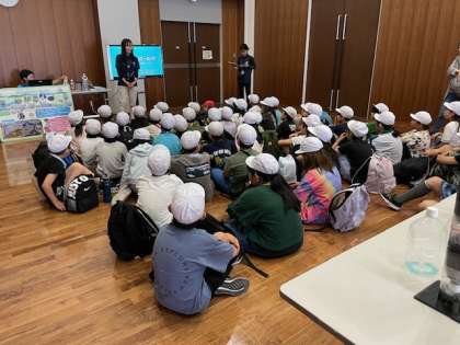 まず部屋で浄水場について説明を聞いたり、動画を見たりしました。柴島浄水場がユニバーサルスタジオよりも広いことにはみんな驚いていました。
