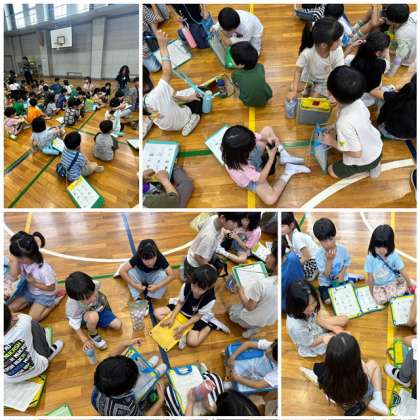 1年生も2年生のお兄さんお姉さんの話をしっかり聞いて活動することができました。上手にお話を聞けたら2年生がシールを貼ってくれました。
