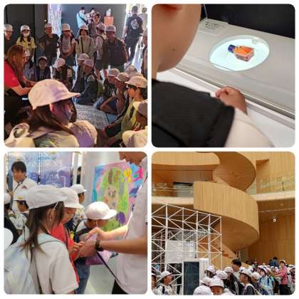 3・4年生で関西万博に行ってきました。天気にも恵まれ、広い会場に子どもたちは大興奮!いくつかのパビリオンに入り、未来の技術や世界の文化にふれることができました。展示や映像を見て、「すごい!」「もっと見たい!」という声があちこちから聞こえてきました。