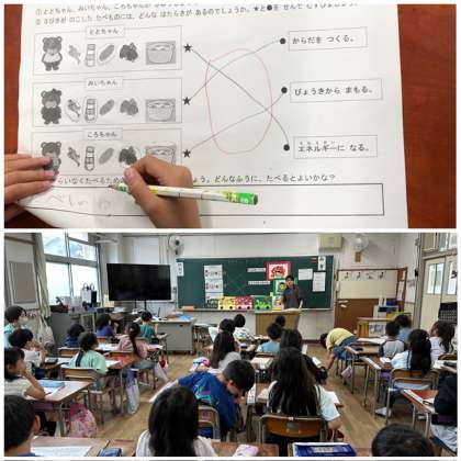 他の小学校から栄養指導の先生にきていただき、すききらいを しないで 食べよう」の学習をしました。
