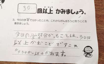 よくかんで食べると、7つのいいことがあることを学習しました。合言葉は『た・こ・の・あじ・は・いー・ぜ』です。それぞれ何を表しているのか、ぜひお子様にきいてみてください。