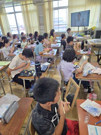 今日は、デンタルフロスを使うことの大切さを体験を通して学習することができました。