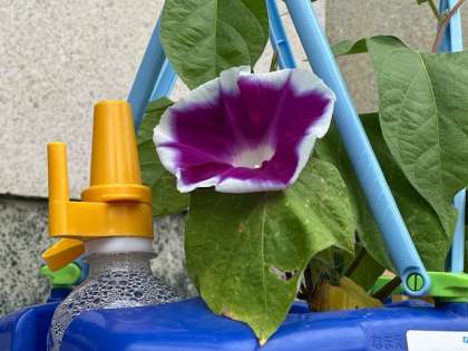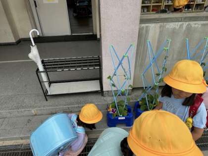 とうとう、今日一人の子のあさがおが咲き始めました。登校したら「あさがおがさいてる!」と大騒ぎでした。
