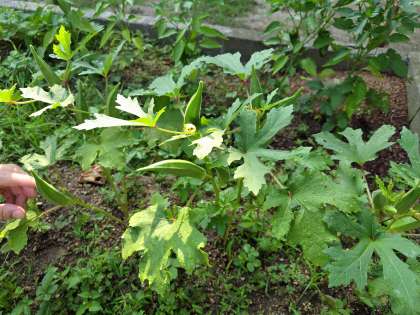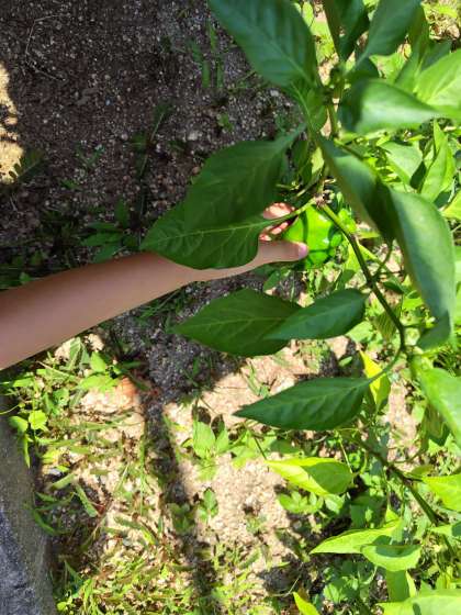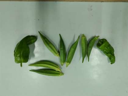 学習園のオクラやピーマンが収穫時期になりました。大きいオクラとピーマンに歓声が上がりました。