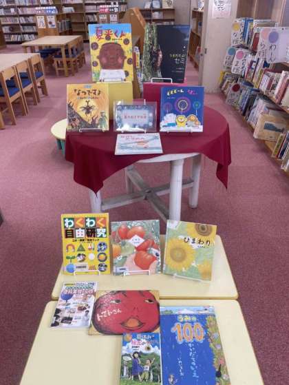 梅雨も明けてもうすぐ夏休み!図書館でも、学校司書さんが夏に関する本を集めて展示してくださっています。