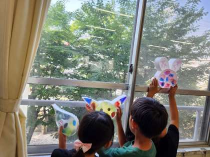 光に透かして、中に入れたセロハンがキラキラする様子を見ては「うわぁ!きれい!」とあちこちで歓声があがりました。