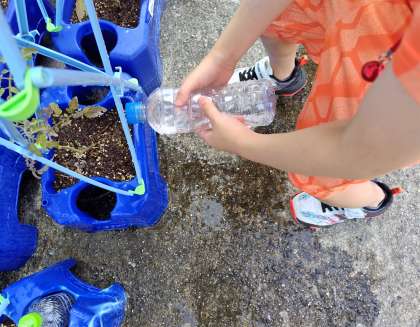 2年生では、毎朝ミニトマトの水やりをがんばっています。もう実ができているミニトマトもあります。毎日嬉しそうに、もしくは心配そうにミニトマトの成長を見守っています。