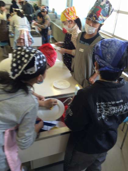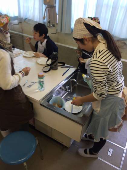 それぞれの子どもが台をふいたり鍋を洗ったり、どの子もさぼらずできていました。
