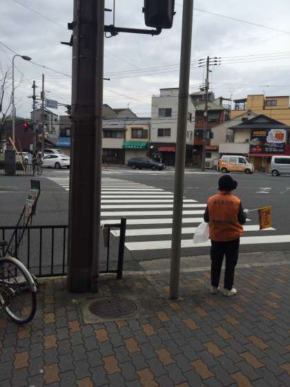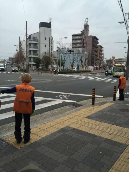 今日は、町内会のみなさんが大きな道路に立ってくださいました。