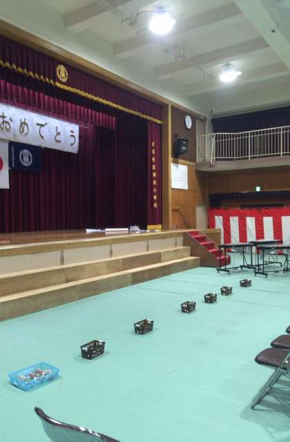会場準備や清掃を、新6年生の児童と教職員で行いました。