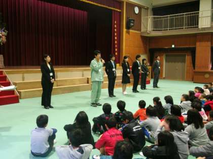 新しく城北小学校に来られた教職員の紹介を、子どもたちにしました。
