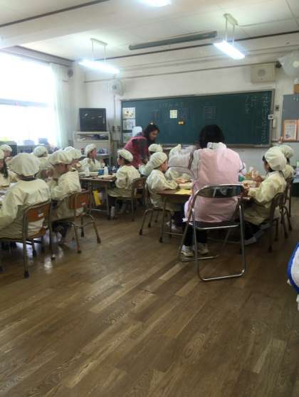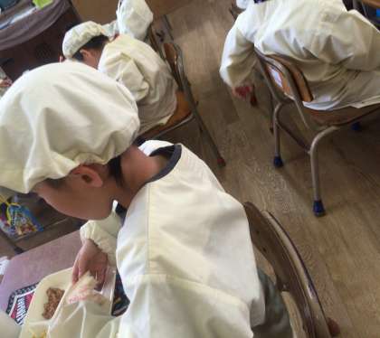 今日は、食パンにジャムを塗っていましたが、上手にできていました。