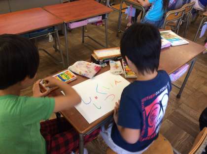そのための準備で各教室に貼るポスターをかきました。それぞれの教室では何をするのかがすぐにわかるポスターを目指して作成しています。