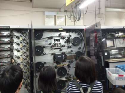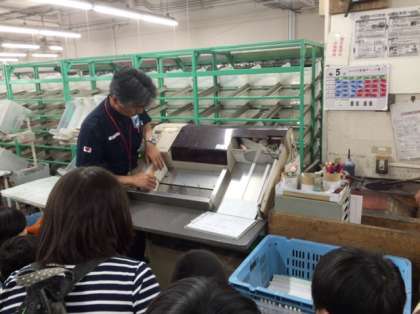 消印を押す機械や、1秒間に11通も処理することができる区分機を目の前で見せていただきました。子どもたちは、その速さに「すごい」「はや〜い」と驚いていました。