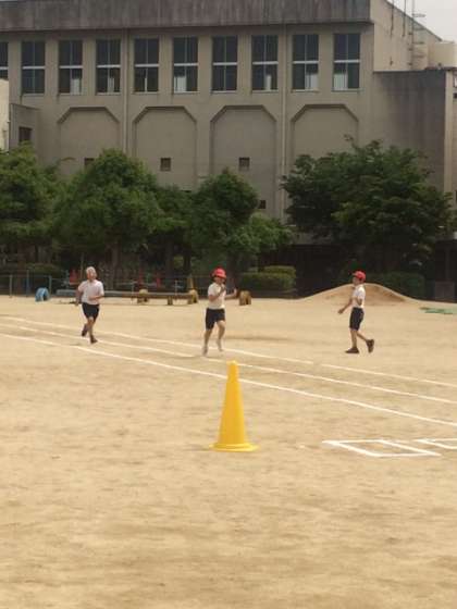 今日の5時間目に、運動場で「50m走」と「ソフトボール投げ」のスポーツテストをしました。