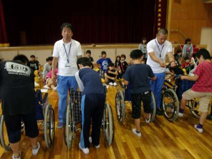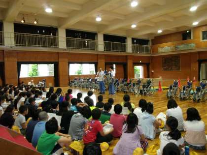 講堂で説明を聞いたり、車いすで自走したりした後、