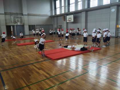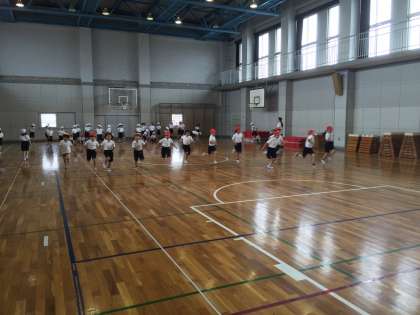 まだ昨日の雨で運動場が使えなかったので、体育館で体育をしました。