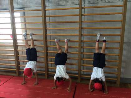 逆立ちの姿勢ではしごをのぼっていくコース