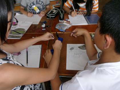 どのように乾電池をつないだら、プロペラが速く回るのか班で相談して実験を行いました。各班、友だちと協力して楽しそうに実験に取り組んでいます。