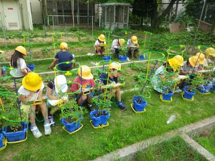 そろそろ実も赤くなり始めています。収穫して持ち帰るので袋をご用意ください。