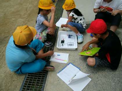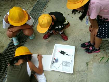 今日の理科では、光電池を使って、学習しました。天気にも恵まれ、元気よく回るモーターに興味津々で実験していました。ノートへの記録も、意欲的にできるようになってきました。