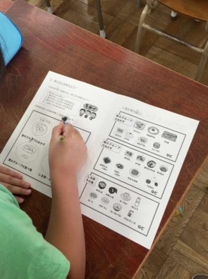 子どもたちは、「朝ごはん手大切やなぁ。」「朝はパンしか食べてなかったけど、明日はおかずも食べよう。」と朝ごはんを食べるときの目標を考えました。
