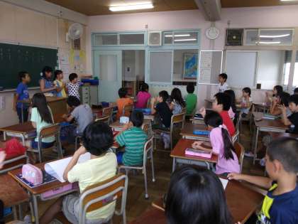 4年生での総合学習では、グループに分かれてごみについて調べていました。今日は、クラスで調べたことを発表しました。どのグループも工夫してまとめることができていました。