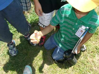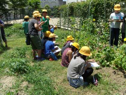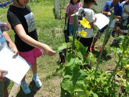 5月に植えたヘチマやヒョウタンがどのくらい大きくなったのか学習園に行って観察しました。ものさしを使って、葉や茎の長さを測ったり、手で触ったりして観察しました。