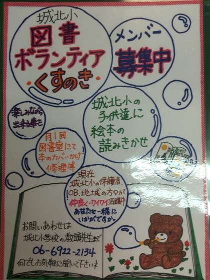 図書ボランティア「くすのき」では、まだまだボランティアの方を募集しています。