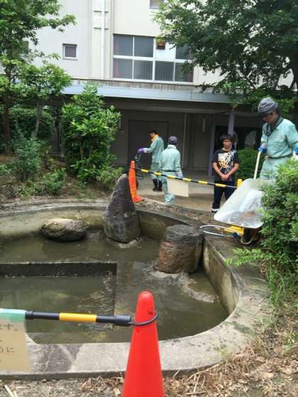 先日、地域のみなさん、PTAのみなさんを中心に、本校の池の清掃をしていただきました。