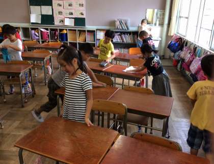 7月の生活目標は「学校を美しくしよう」です。夏休みまであと1日の今日は1学期間使った机・椅子・ロッカーを丁寧に拭きました。ピカピカになった教室で明日終業式を迎えます。