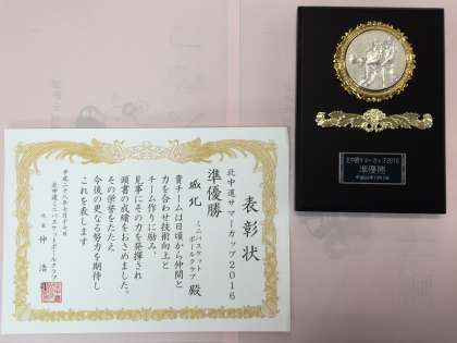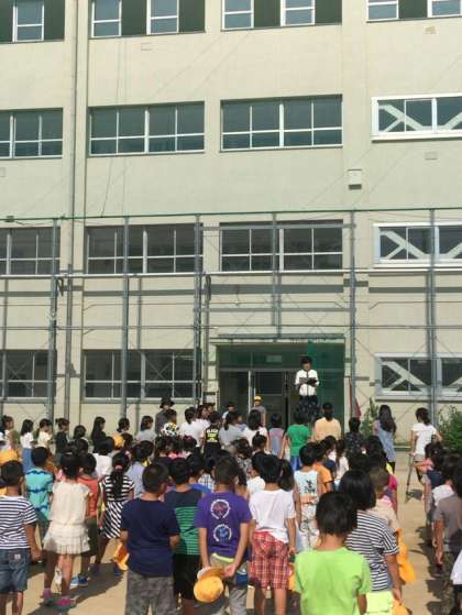 また、本校の体育館でいつも練習をがんばっているミニバスケットボールチームが、優秀な成績をおさめたので、表彰がありました。