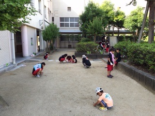 今日は、早朝からPTA、体育施設開放委員会、町会の皆さんで校庭の雑草刈りをしていただきました。