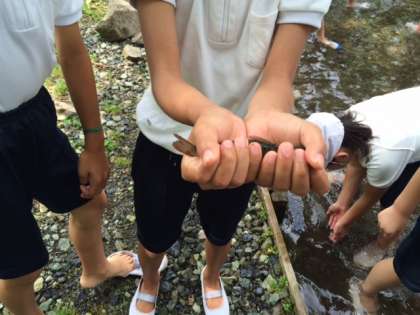林間学舎(1日目) その12 魚つかみ(いただきます)