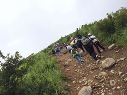 険しい道を皆で登り「絶対みんなで登り切るぞ!」と、声を掛け合いながら山頂に着きました!