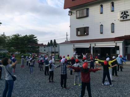 朝の集いでは、ラジオ体操をして最後の林間の朝に浸っています。