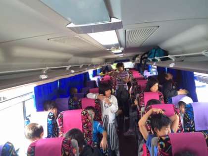 子どもたちは、バス内で映画を観ています。