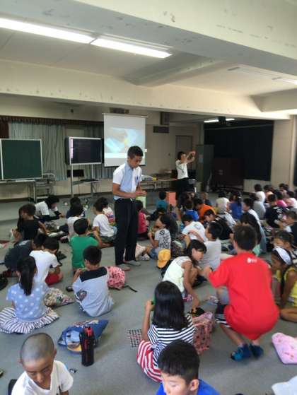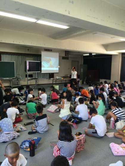 3年生と4年生は、視聴覚室で折り鶴を折りました。