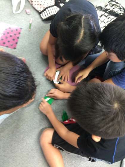年齢も近い3年生と4年生は、とても仲良く協力し合いながら、折り鶴を折りました。