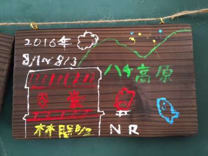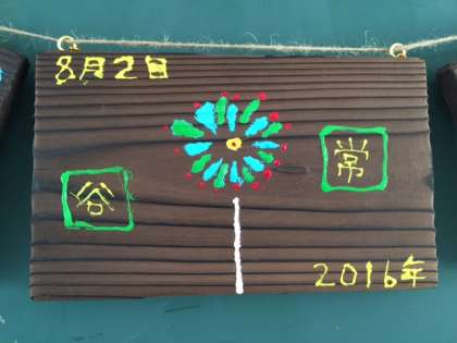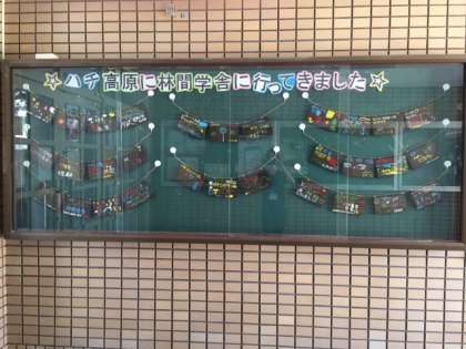 林間学舎で作成した焼き板を正門のところに掲示しています。たくさんの思い出が詰まった焼き板を是非見て下さい。