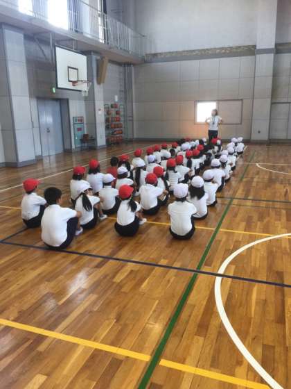 運動会に向けて、整列・行進・ラジオ体操の練習をしました。指先までピンと伸ばすことを意識して頑張りました。