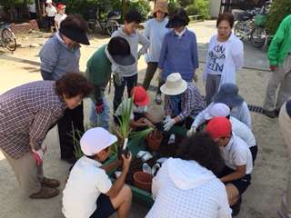 そして本日、城北小学校にて43本の花菖蒲植えを行いました。