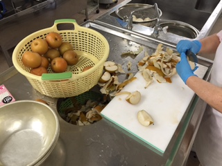 子どもたちにみずみずしく食べてもらえるように、時間を計算して皮を剥いていきます。