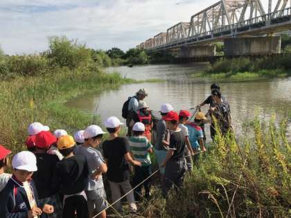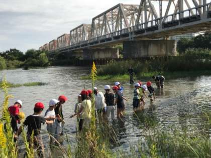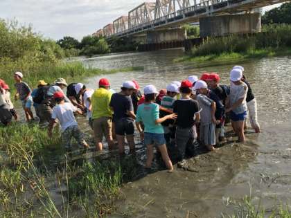 追い込み漁では何が取れるのか、みんな興味津々でわんどの中に入っていました。