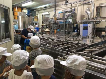 ささやまフーズに行きました。道に迷いながらも、地図を頼りにたどり着くことができました。こんにゃくの材料を見せていただいたり、工場の中にも入らせていただき製造過程を見学させていただきました。子どもたちは工場内の機械の動きに興味津々でたくさん質問をすることができました。