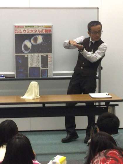 海ホタルについて詳しく教えていただいた後、実際に光る様子を見せていただきました。