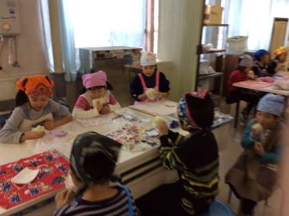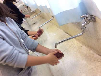 学習園で育てたさつまいもで茶巾絞りを作りました。