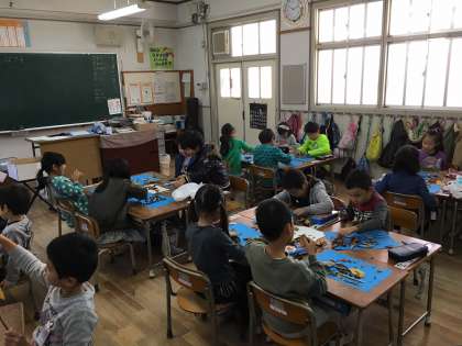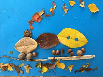 秋見つけで拾った 葉っぱやどんぐりなどを