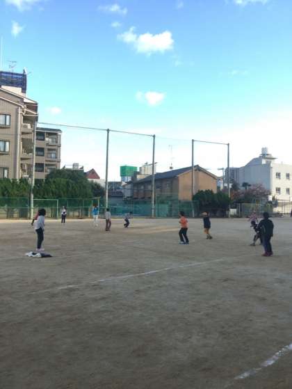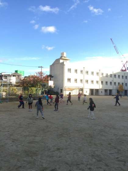放課後の運動場を見てみると、寒さに負けず子どもたちが元気に遊んでいました。